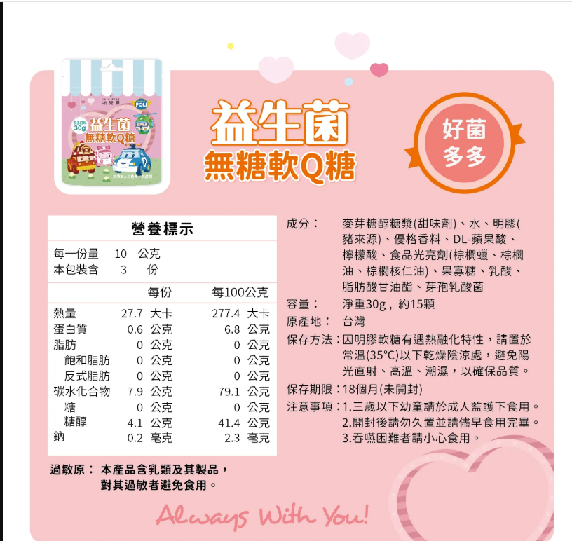 法兒貝波力|益生菌 無糖軟Q糖(30g)