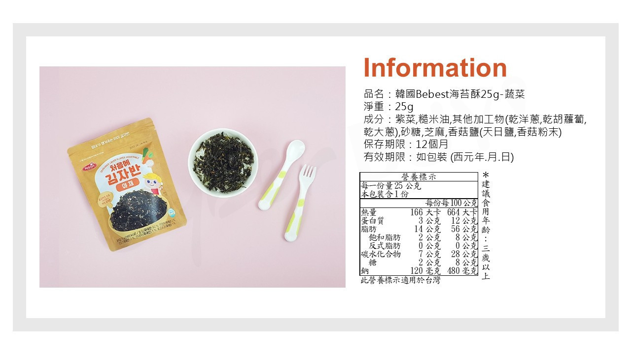 韓國Bebest海苔酥|蔬菜