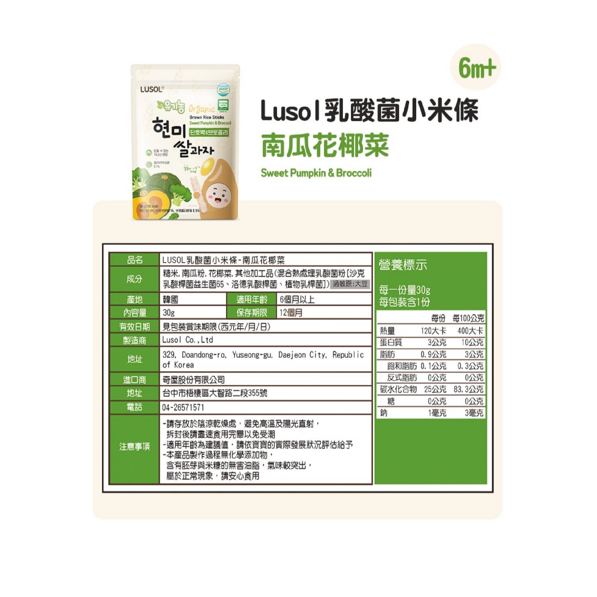 韓國LUSOL|乳酸菌小米條-南瓜花椰菜