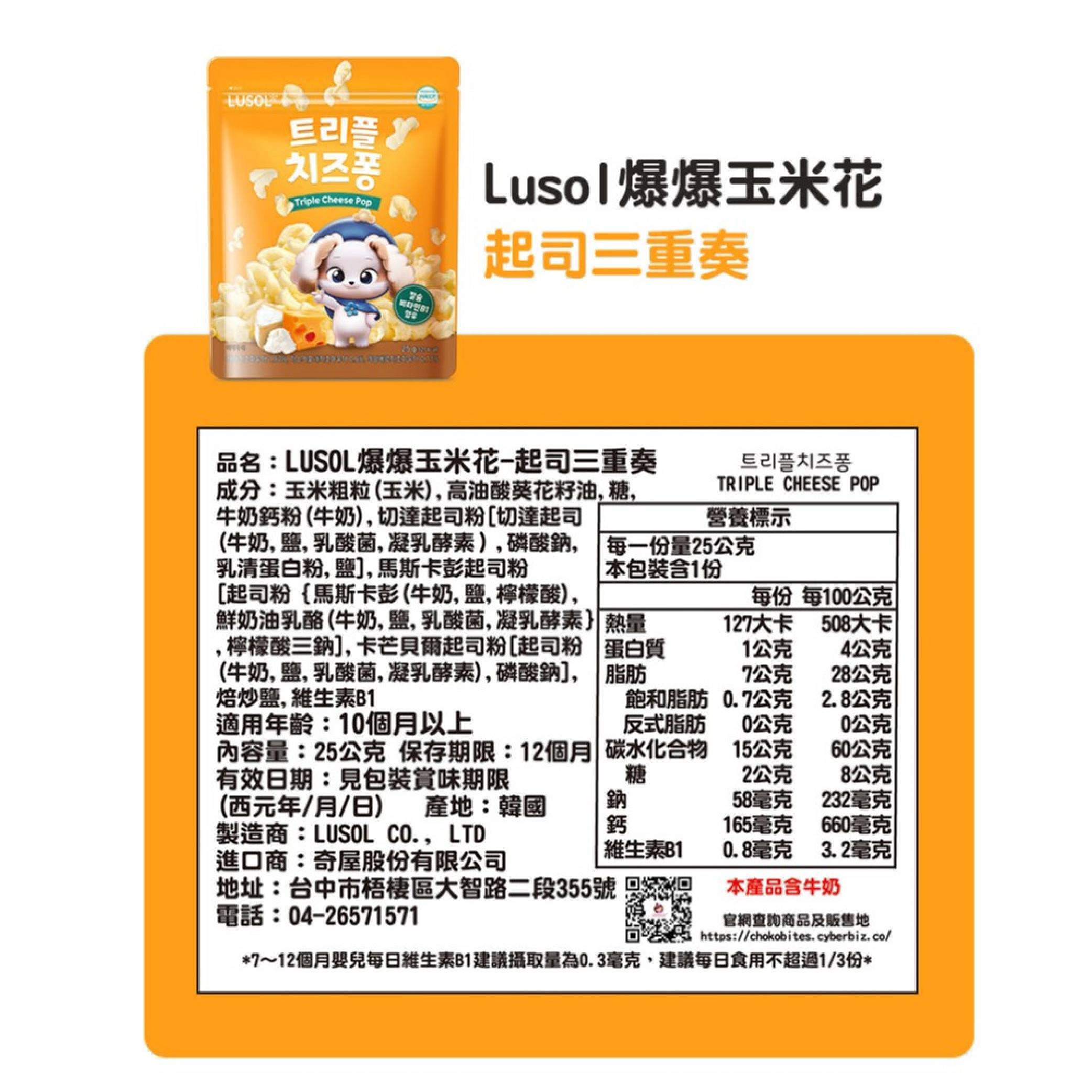 韓國LUSOL|爆爆玉米花-起司三重奏
